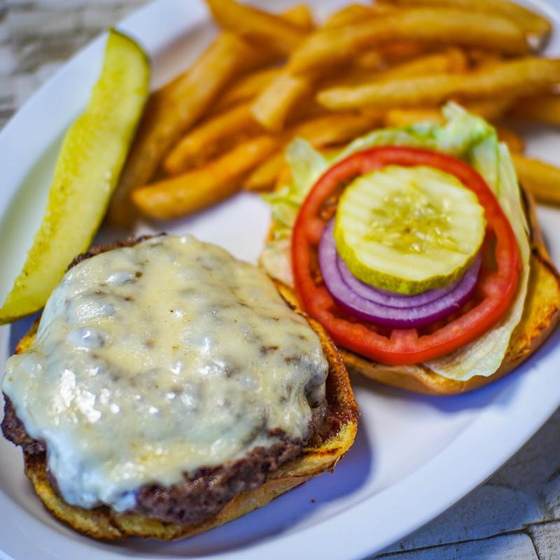 Each Kelsey Burger is 1/2 Lb of ground chuck, with lettuce, tomato, onion, mayo, and a Boar's Head Pickle Spear. Served with house-made chips, fries, or coleslaw.
